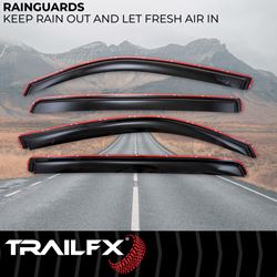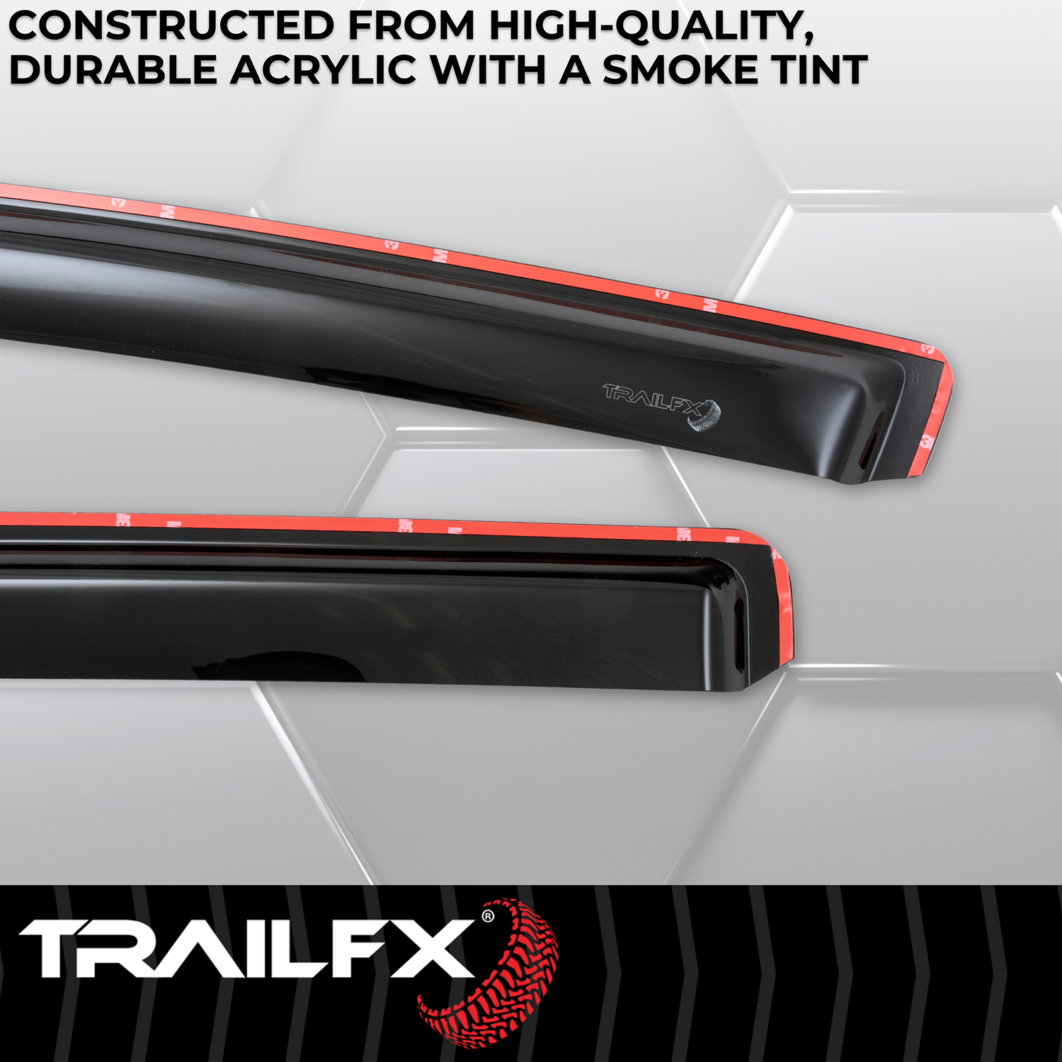 The TrailFX 4818IC In-Channel Window Deflectors provide a low-profile solution for improved ventilation and weather protection. These smoke-tinted acrylic deflectors allow you to keep your windows slightly open during inclement weather, reducing heat buildup and allowing fresh air circulation without letting rain inside your vehicle.