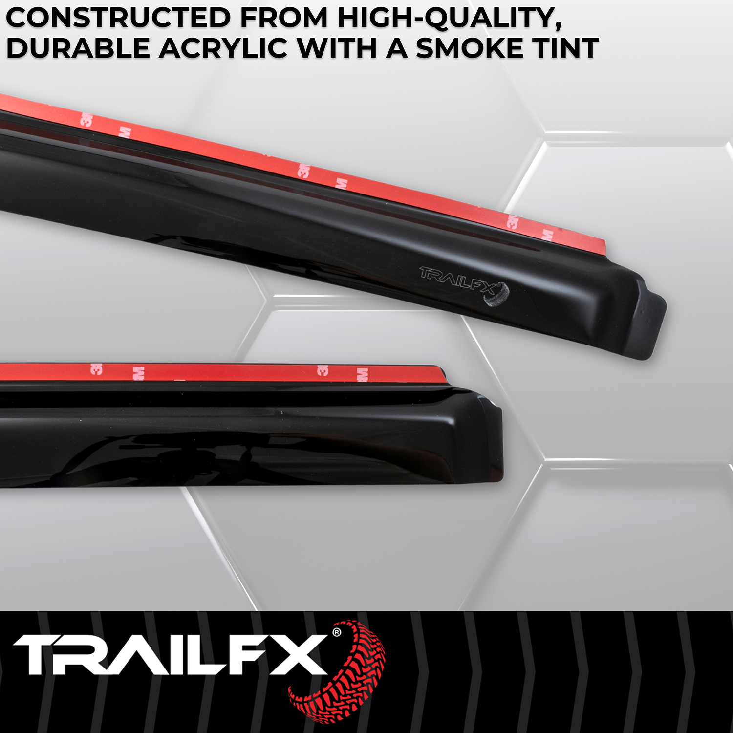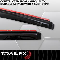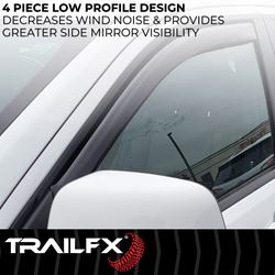 The TrailFX 4975IC In-Channel Window Vent Visors provide a sleek, low-profile solution for ventilation and weather protection on your Ford F-150 SuperCab or SuperCrew. These smoke-tinted acrylic vent visors allow you to keep your windows slightly open during rain or shine, improving air circulation while keeping the elements out.