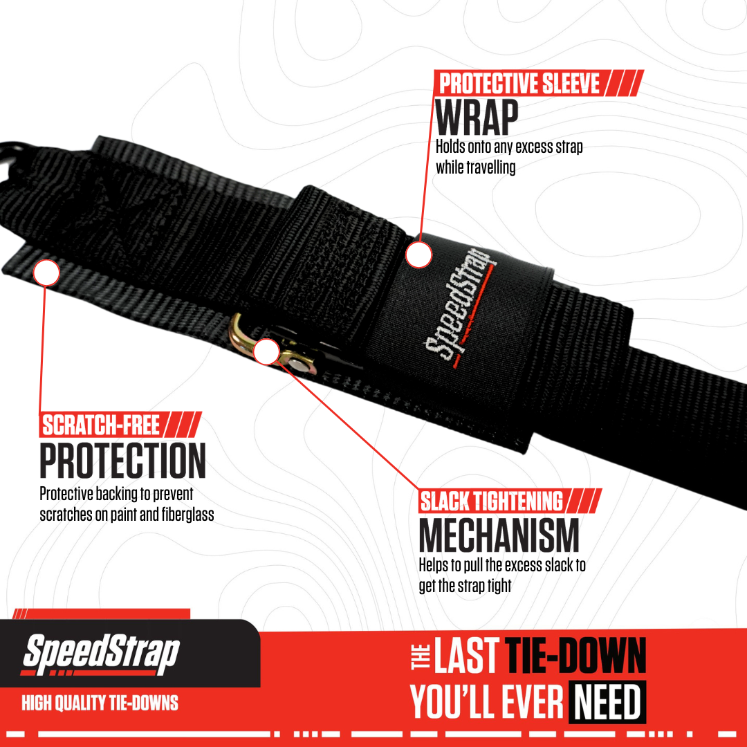 Each package includes two complete transom tie-down straps, giving you a matched pair for balanced securing. Ideal for boat owners, PWC enthusiasts, and anyone who regularly trailers watercraft. Backed by SpeedStrap's lifetime warranty when registered.