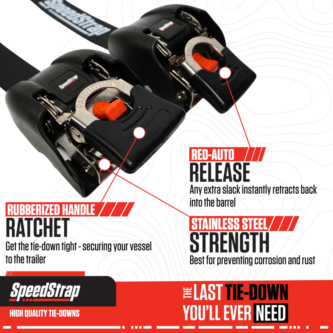 Spend less time wrestling with tie-down straps and more time on the water with SpeedStrap's retractable transom tie-down system.