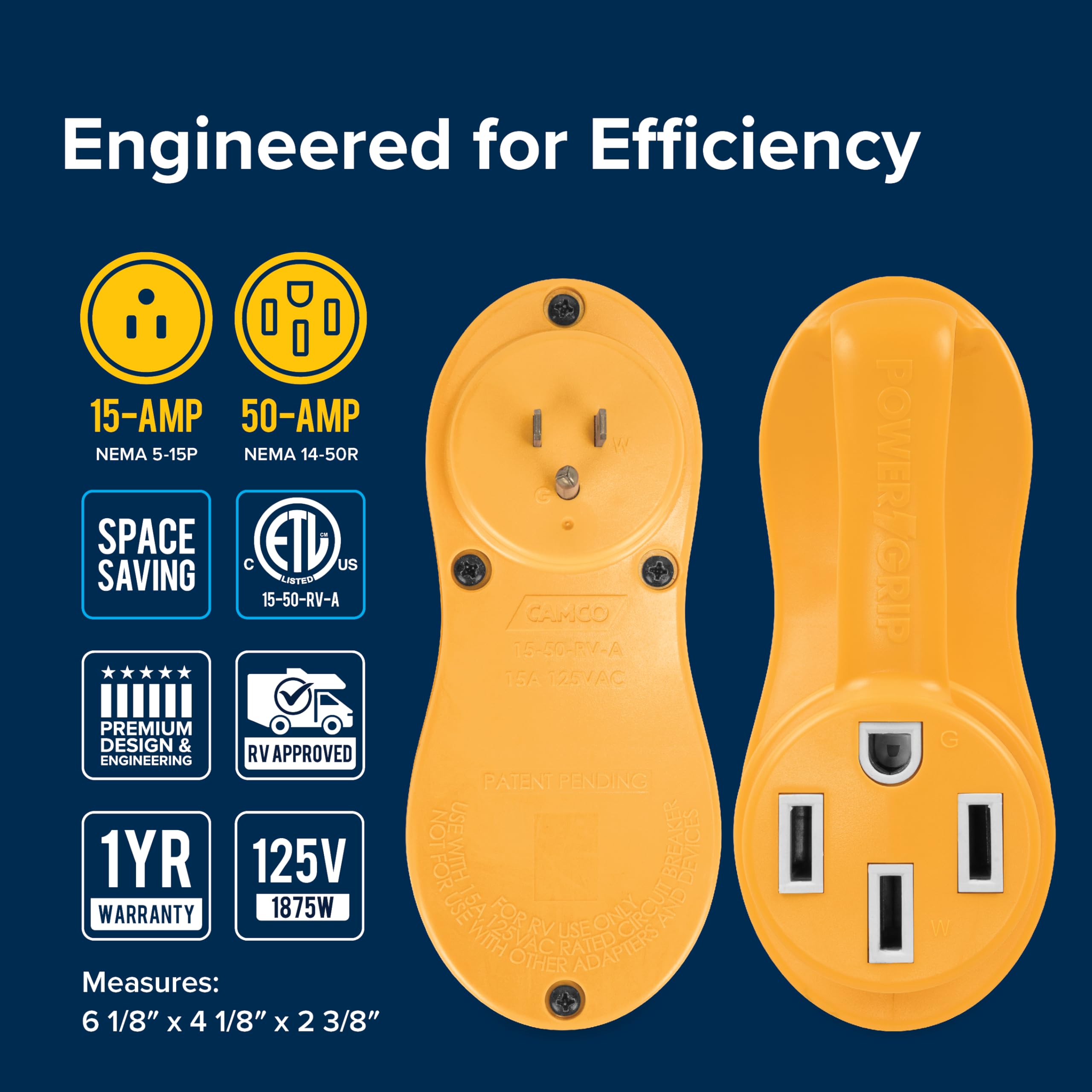 Camco 55137 Power Grip Offset Adapter 15A Male to 50A Female RV Electrical