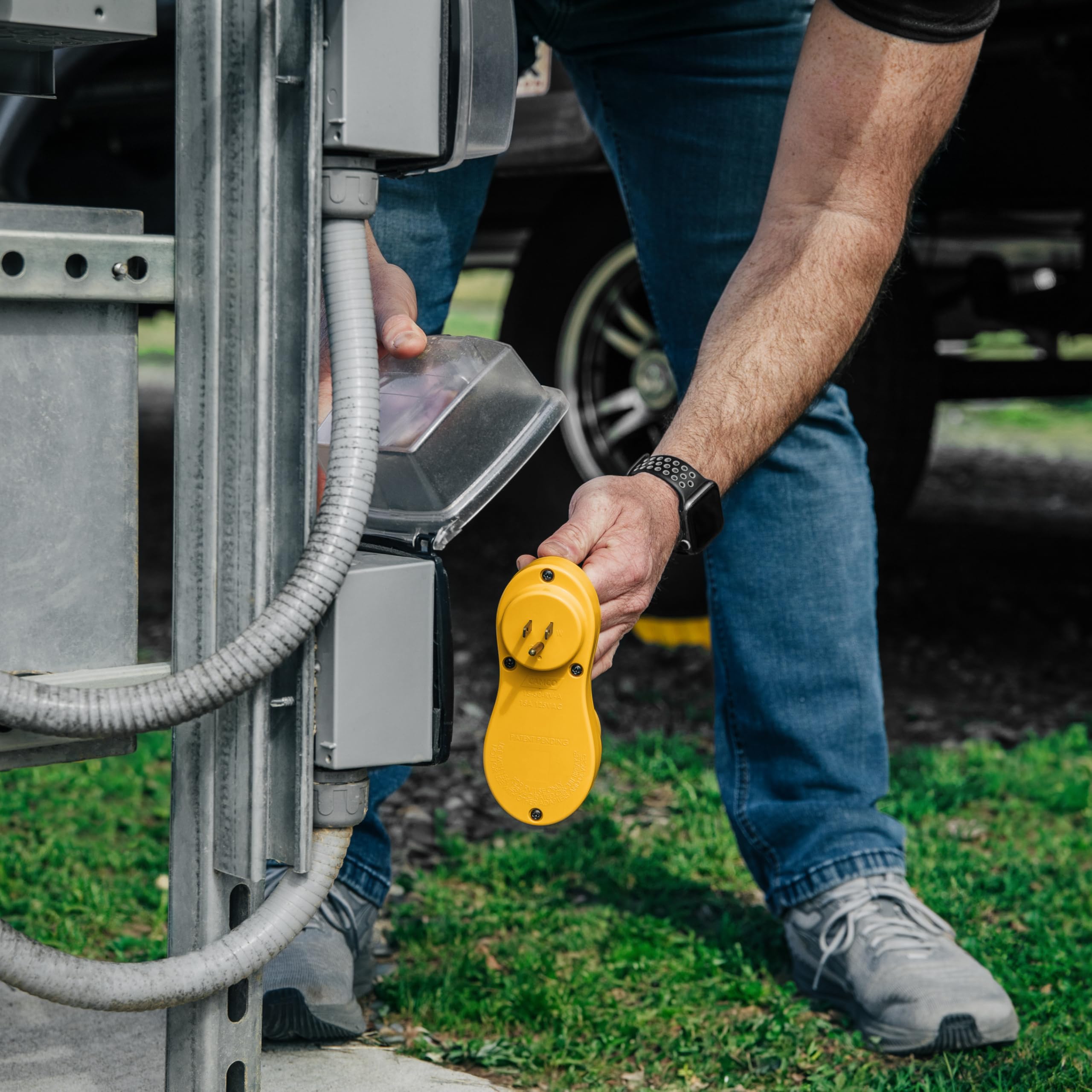• 15 amp male plug to 50 amp female receptacle configuration