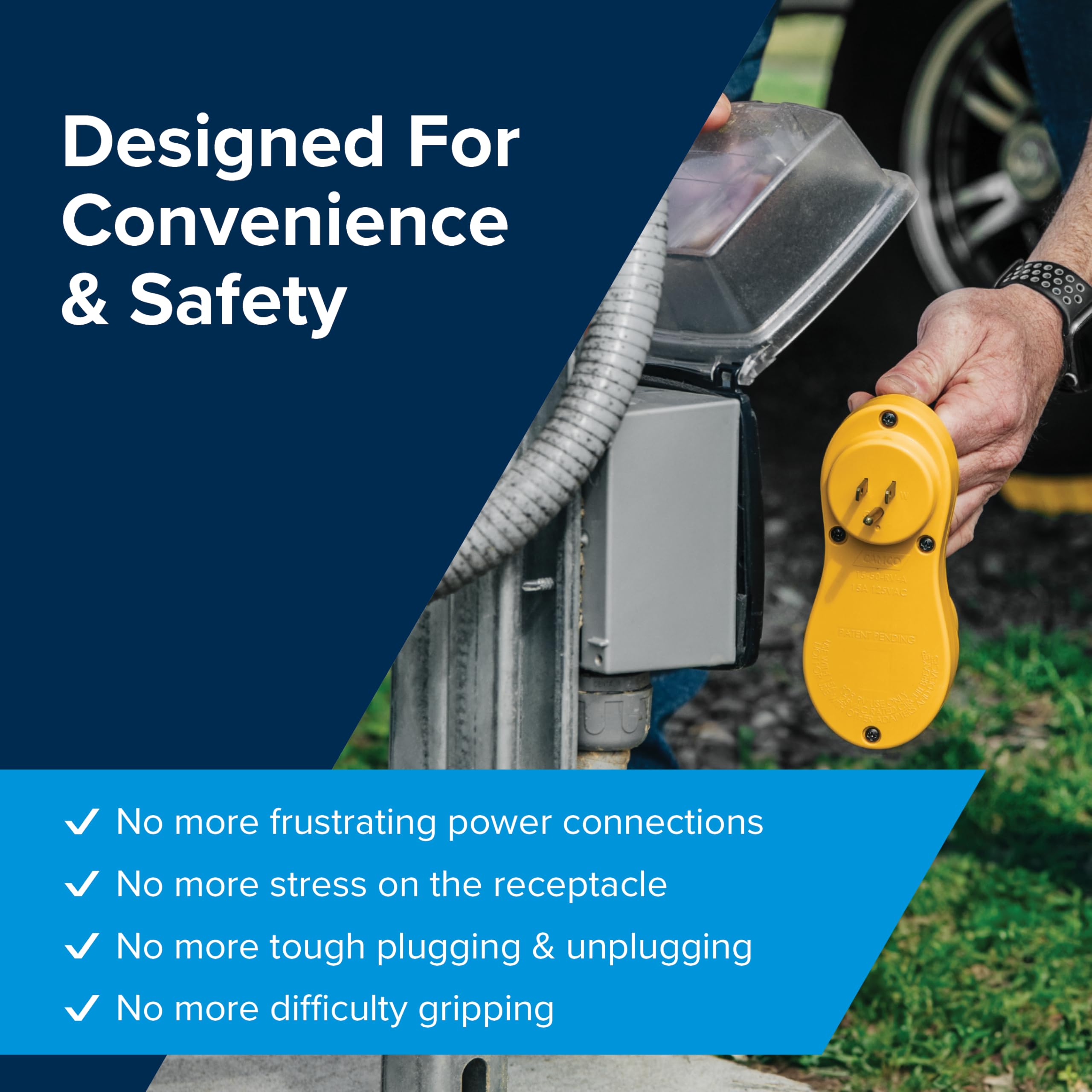 • Offset design relieves cord stress and strain on connections