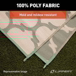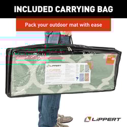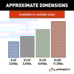 The Lippert Components 2021028009 is a durable reversible patio mat designed specifically for RV outdoor living spaces. Measuring 8 feet wide by 12 feet long, this all-weather mat provides ample coverage for your campsite patio area while resisting the elements season after season.