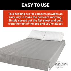 This Easy Zzzs bedding set solves one of the most common complaints among RV owners—sheets that won't stay tucked on shorter RV mattresses. The integrated design ensures a neat, comfortable bed every night, while the easy-care fabric stands up to life on the road.