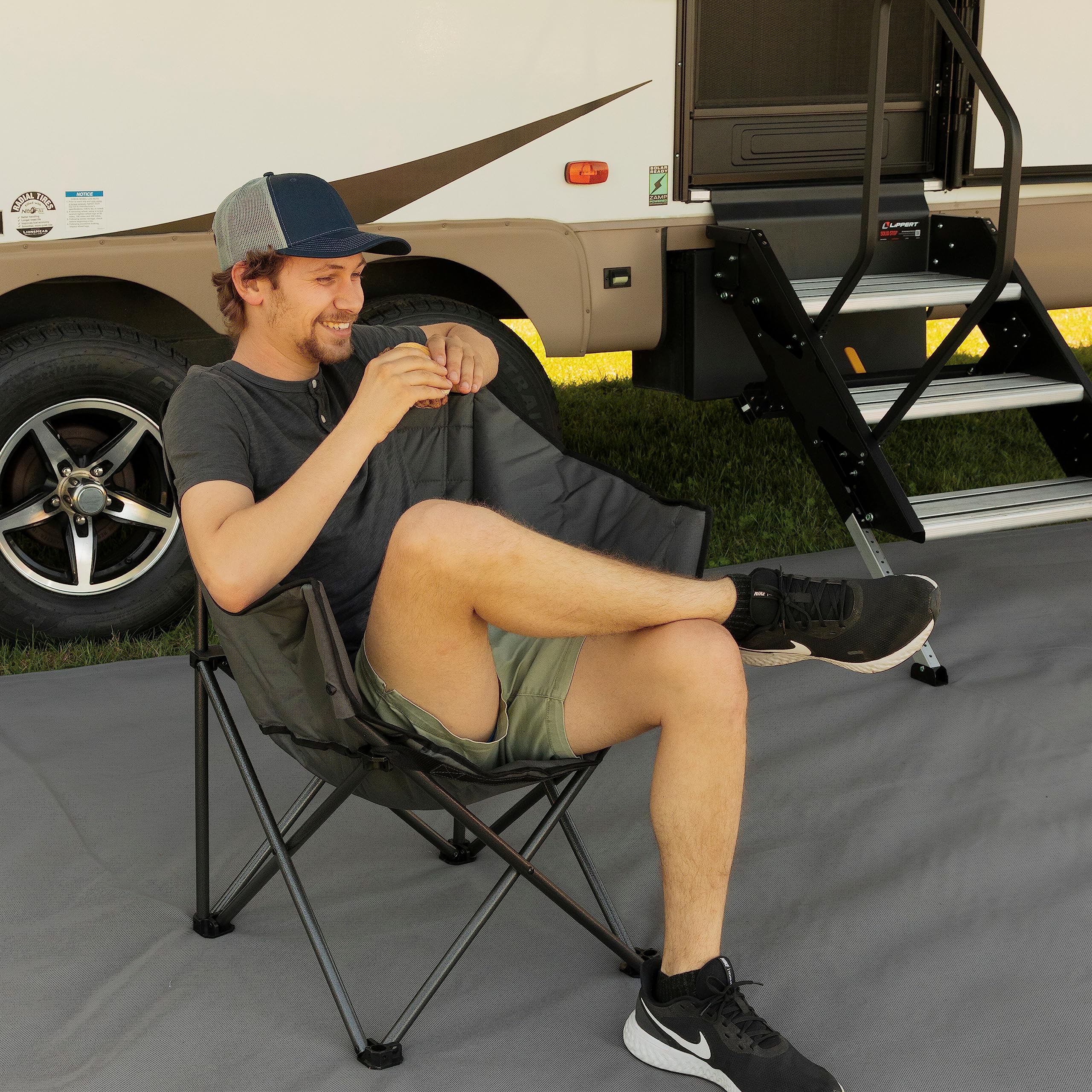 With dimensions of 32.5 inches deep, 29.5 inches wide, and 23.5 inches high, this barrel chair offers generous seating space while remaining compact when folded. The included carry bag makes it easy to transport from your RV storage to your campsite setup. Whether you're relaxing around the campfire or enjoying outdoor events, this chair delivers the perfect blend of comfort, durability, and convenience.