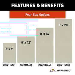 Transform your outdoor living space with the Lippert Components 8' x 12' Sage All-Weather Patio Rug, designed specifically for RV and camper use. This durable outdoor rug creates a comfortable, finished look for your campsite while protecting against dirt and grass stains.