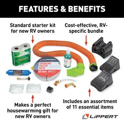 Lippert Components 2023000843 Standard RV Starter Kit with Power Adapter, Water Hose, Sewer Kit & Accessories