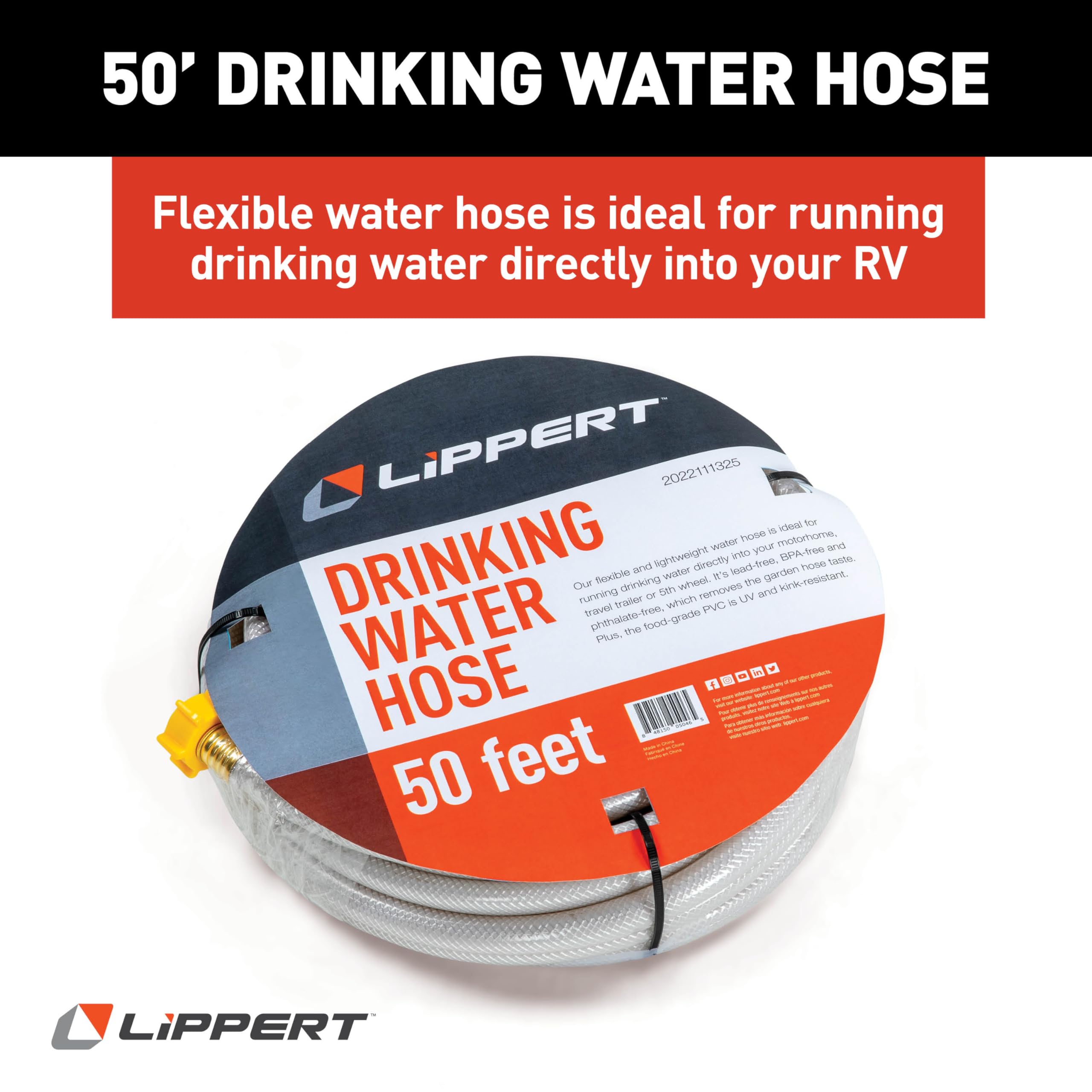 • 50-foot drinking water hose for fresh water connection