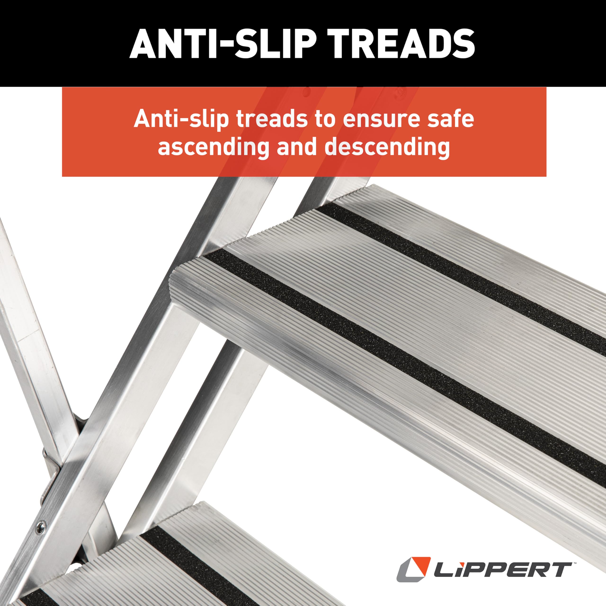 • Anodized anti-slip treads ensure safe footing in all weather conditions