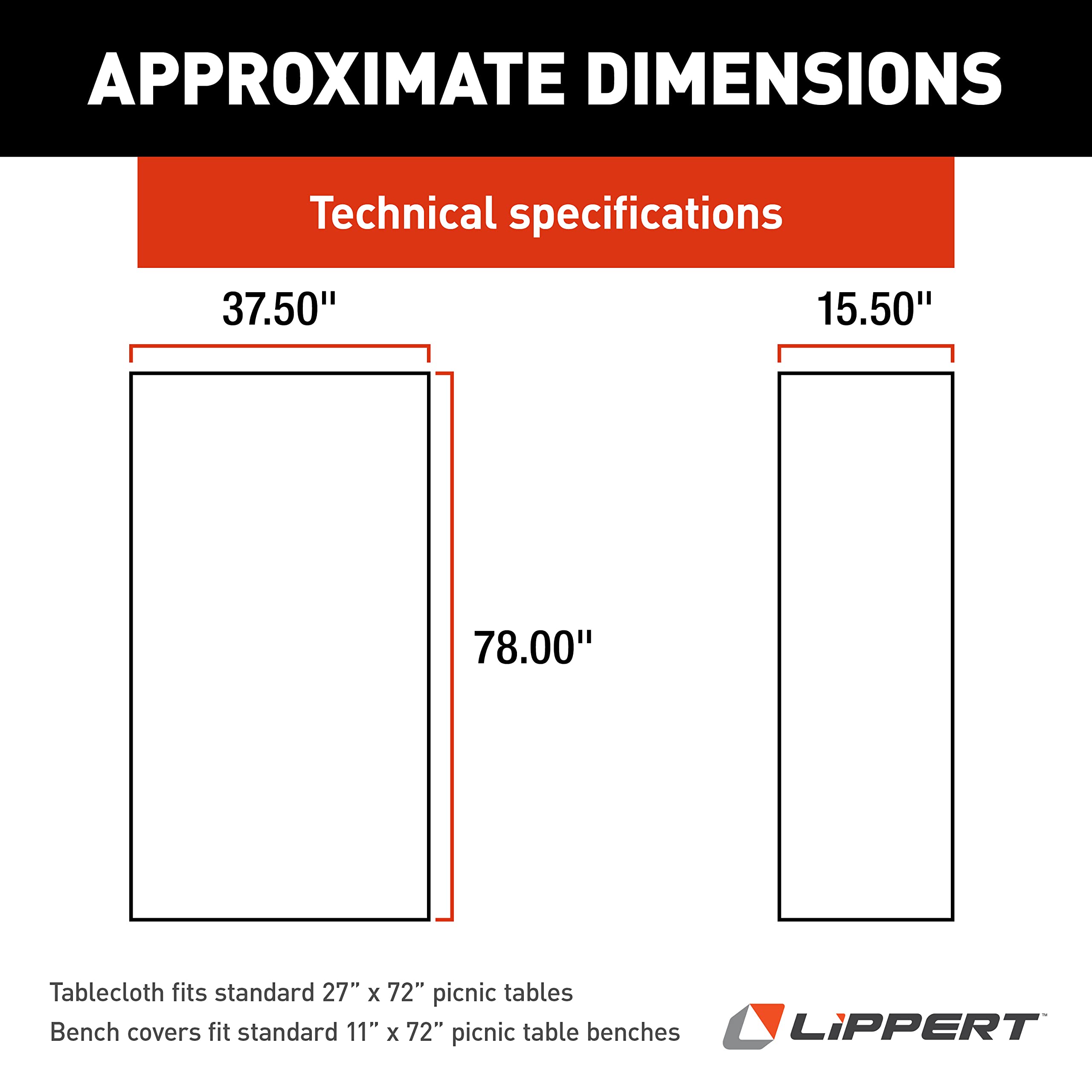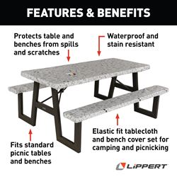 • Fits standard 27" x 72" picnic tables and 11" x 72" benches