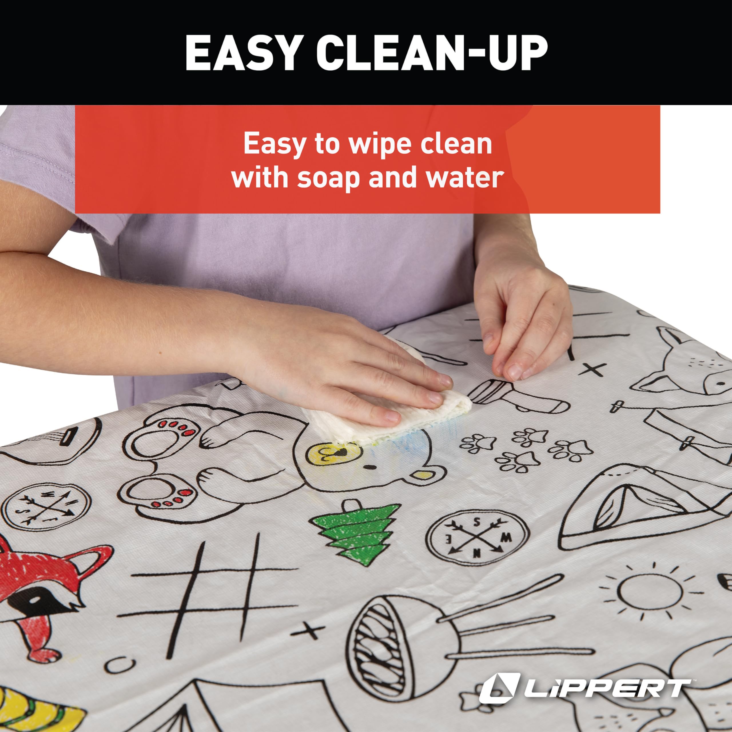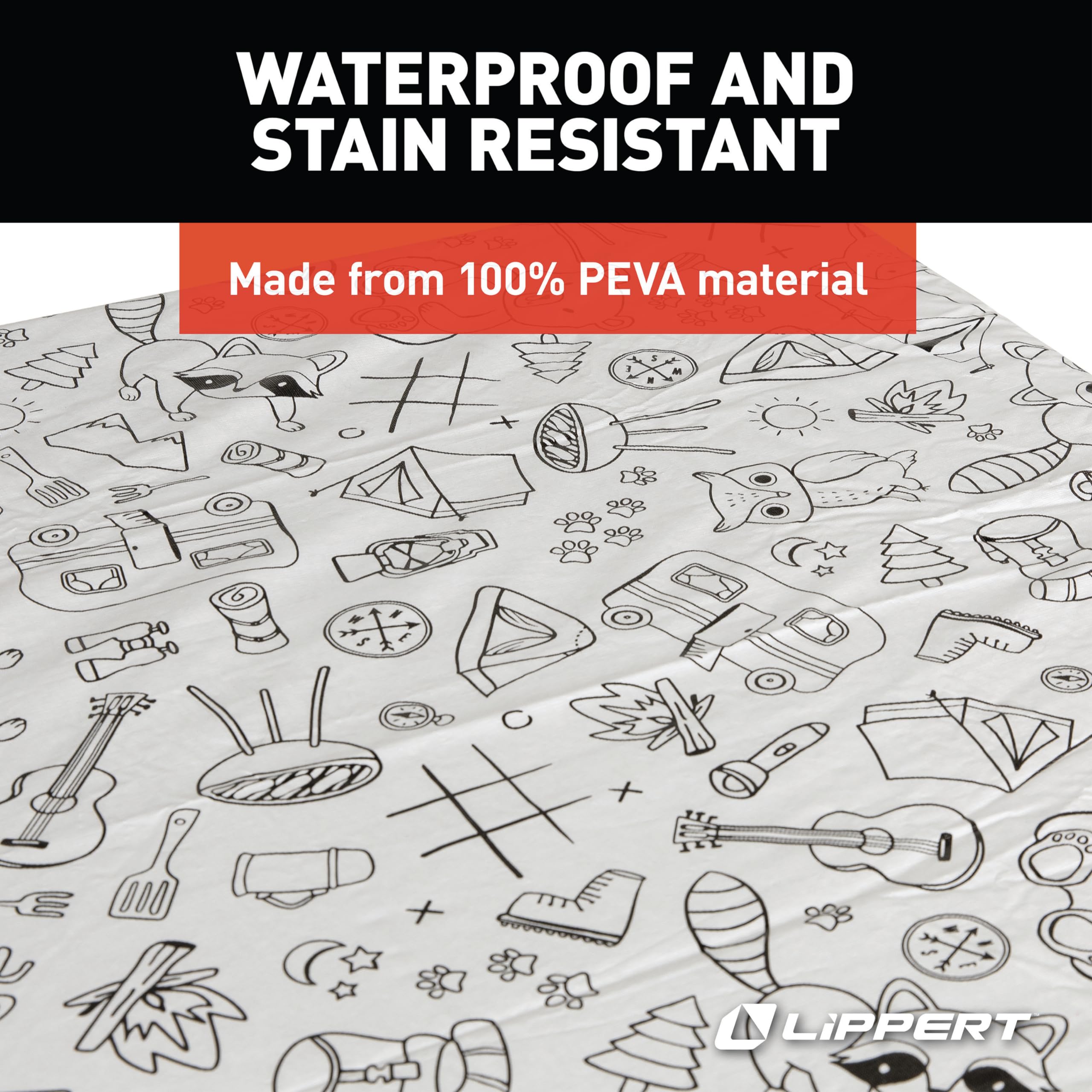 The Lippert Components Color Escape Tablecloth and Bench Cover Set transforms outdoor dining into a creative activity for children while protecting your picnic table from spills, scratches, and stains. This innovative cover set features colorable designs that keep kids entertained during camping trips and outdoor gatherings.