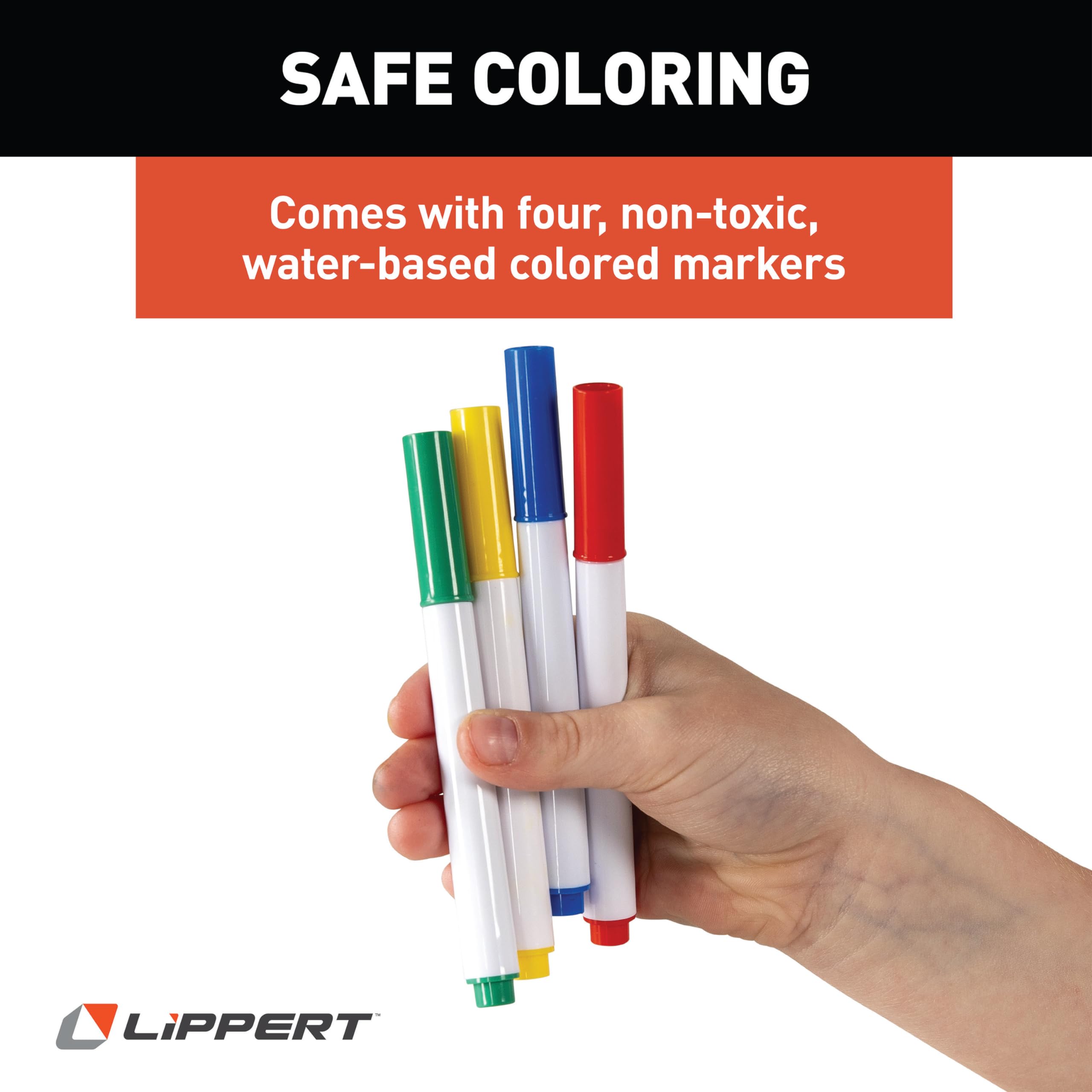 • Includes four non-toxic, water-based colored markers for creative fun