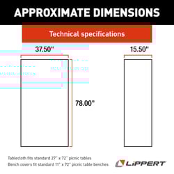 • Fits standard 27" x 72" picnic tables and 11" x 72" benches