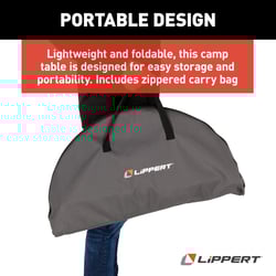 The Lippert Components 2023053720 is a versatile two-tier folding camping table designed for optimal convenience at your campsite, tailgate, or outdoor event. This compact side table features a space-saving dual-level design that maximizes your surface area while maintaining a small footprint.