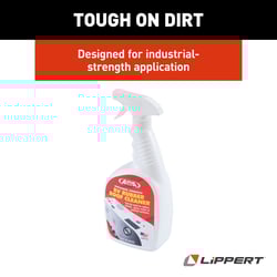 The Lippert Components 862414 is a 22 oz. ready-to-use rubber roof cleaner from the Alpha Systems product line, exclusively distributed by Lippert. This specialized formula makes it easy for RV owners to clean and maintain their RV's roofing, delivering a spotless shine with minimal effort.