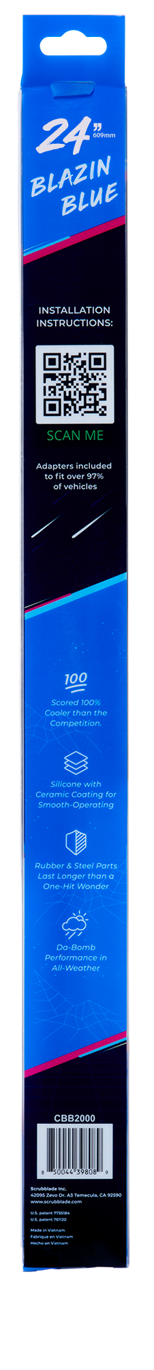 Scrubblade CBB2400 24" 610Mm Blue Silicone Shadeblade Wiper Blade