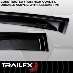 TrailFX window vents are engineered for precise fitment on 2024-2025 Chevy Trax models, ensuring easy installation and a factory-quality appearance. The durable acrylic construction resists fading and cracking, providing long-lasting performance in all weather conditions.
