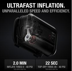 • 22-amp air compressor with ultrafast inflation speeds