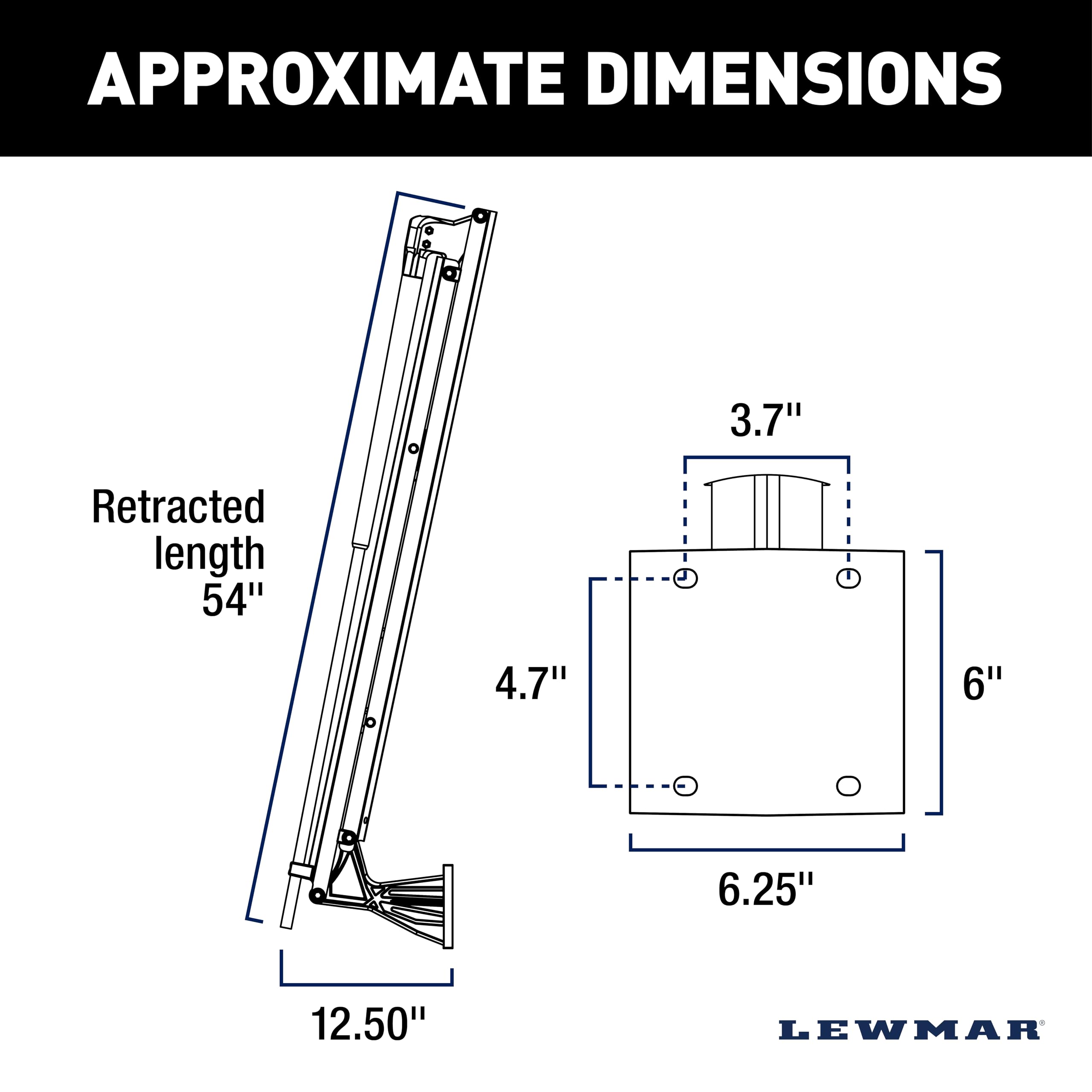 • Compact design: 12.5" L x 6.25" W x 54" H