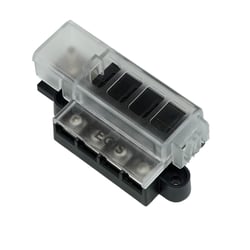 The Egis Mobile Electric RT Fuse Block provides organized, protected distribution for four electrical circuits in automotive, marine, RV, and powersports applications. This compact fuse block features clearly marked circuit positions and includes a protective cover to shield against dust, moisture, and accidental contact.