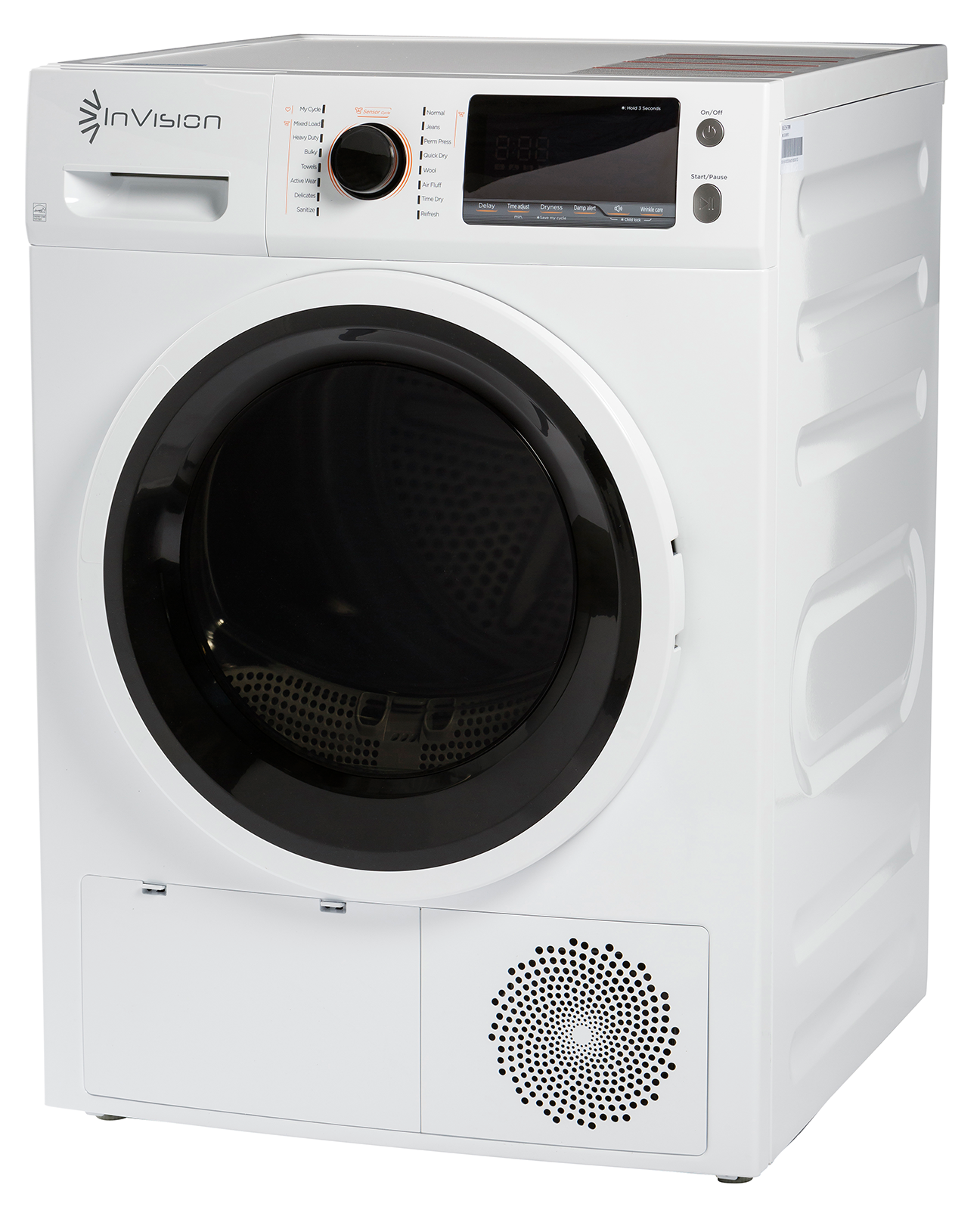 Designed specifically for the RV lifestyle, this InVision dryer combines whisper-quiet operation with professional cleaning performance. The advanced sensor technology helps save energy and prevent over-drying, while the variety of cycle options ensures optimal care for every fabric type. Perfect for RVers who refuse to compromise on laundry convenience while on the road.