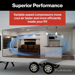• Variable Speed Compressor: Senses climate conditions to help move cool air faster and more efficiently inside your RV, eliminating abrupt starts and stops for quieter operation