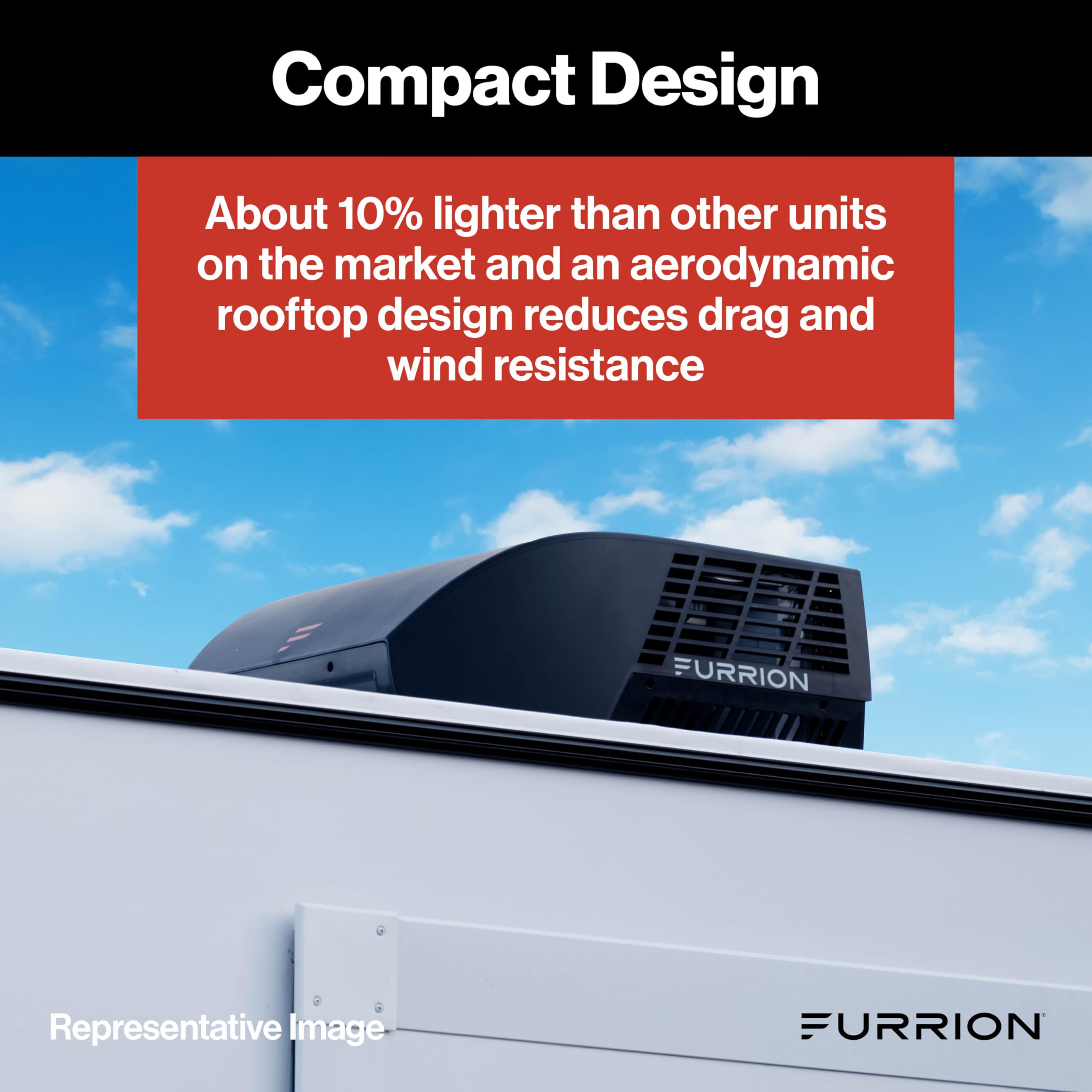 • High Energy Efficiency: About 10% lighter than other units at 72.4 lbs., with an aerodynamic rooftop design to reduce drag and wind resistance