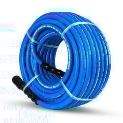 The Blushield Tough-Tek Rubber Pressure Washing Hose delivers professional-grade performance for demanding high-pressure cleaning applications. This 100-foot hose features a 1/4-inch diameter and comes equipped with M22 connectors for quick, secure attachment to most pressure washers.