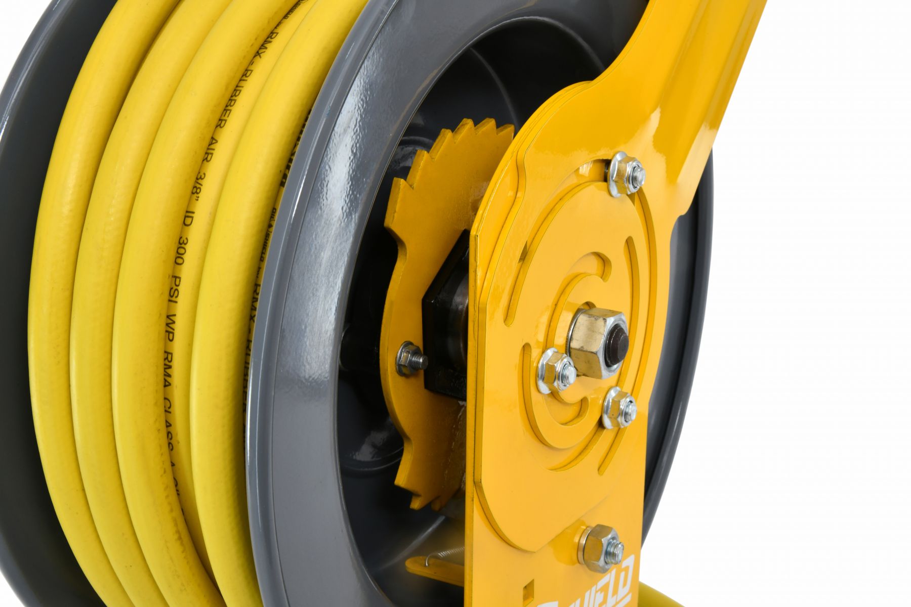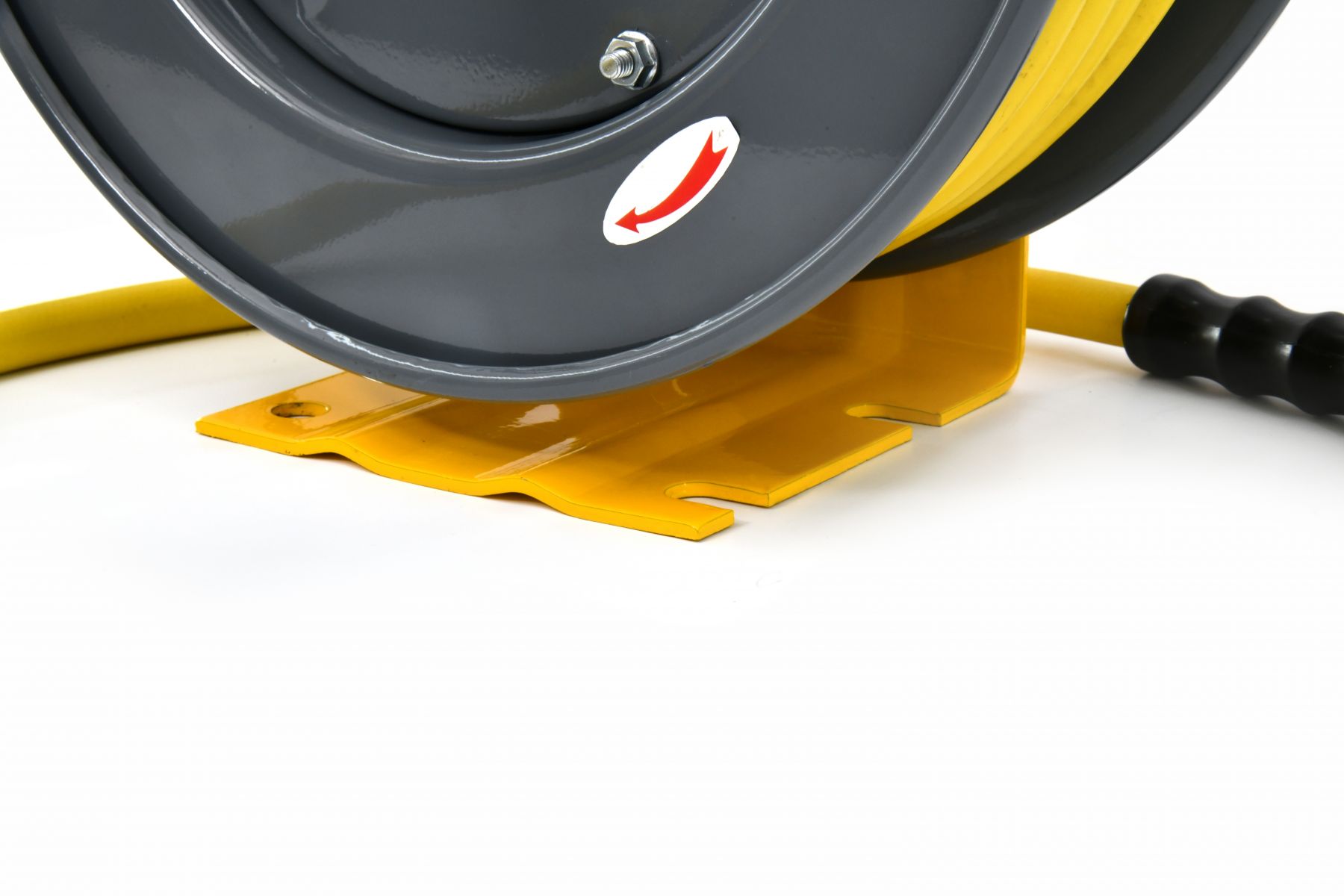 • Heavy-duty single-arm steel reel with 18-gauge powder-coated finish