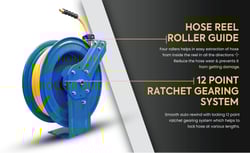 • Four non-snag rollers and integrated reel stopper minimize hose abrasion and wear