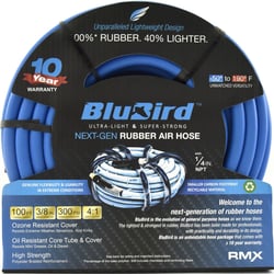 The BluBird BB38300 is a professional-grade bulk rubber air hose designed for demanding pneumatic applications in automotive service, construction, manufacturing, and fabrication shops. This 300-foot continuous length hose features 3/8" inner diameter, making it ideal for powering impact wrenches, air tools, tire inflation equipment, and pneumatic systems throughout service bays and workshops.