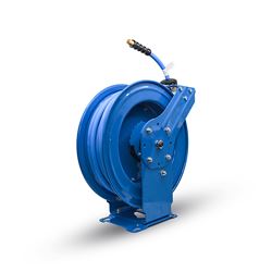 The BluBird BBRDA1250 dual arm air hose reel delivers professional-grade performance with a corrosion-resistant powder coated heavy duty steel construction. This versatile hose reel includes a high-quality 1/2" x 50' rubber air hose and features an L-shaped base with groove reinforcement for exceptional stability during use.