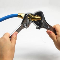 The BluBird FFSW38 Fast Fix Air Hose Repair Fitting provides a quick and reliable solution for damaged or leaking 3/8" air hoses. This precision-engineered fitting features a 1/4" male NPT swivel connection that allows for flexible positioning and eliminates stress on connections during use.