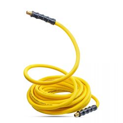 Ideal for tire service, pneumatic tools, air drills, ratchet wrenches, service bays, garages, manufacturing facilities, and fabrication shops. The hybrid polymer construction provides superior flexibility and high flow rate while resisting tangles even under pressure. Backed by a 1-year warranty, this hose delivers professional performance with reduced operator fatigue for years of reliable service.
