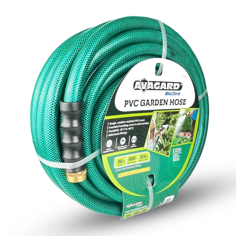 The Avagard AVGPV3450 is a heavy-duty 3/4" x 50' PVC water hose assembly designed for professional and residential applications across construction, landscaping, agriculture, food processing, and industrial environments. Engineered with 100% PVC construction, this hose delivers exceptional durability while remaining 20% lighter than comparable rubber hoses for easier handling and maneuverability.