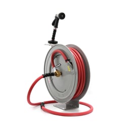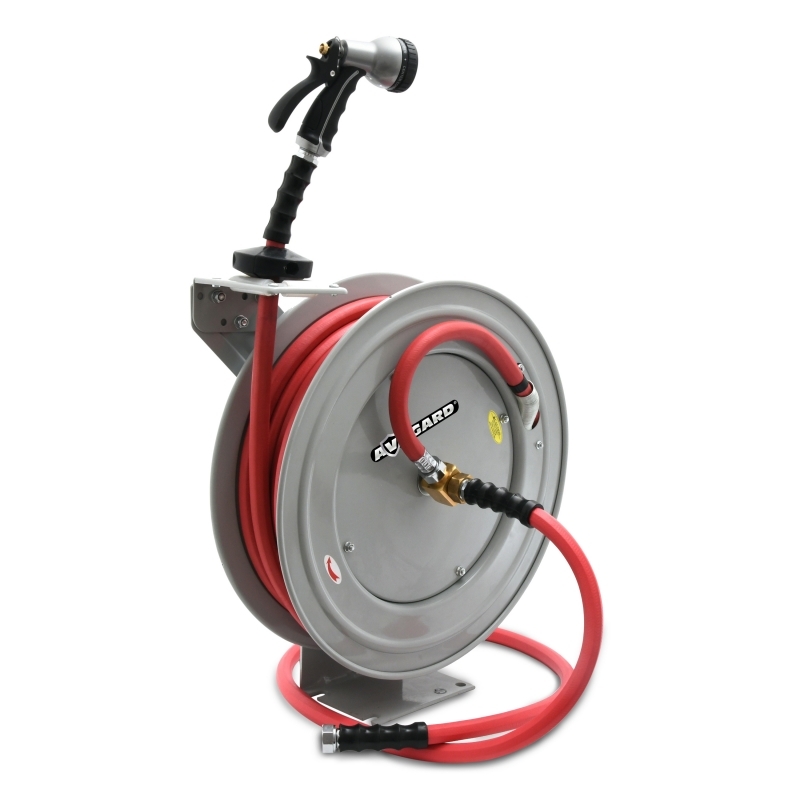 The Avagard AVGWRHD3450 is a heavy-duty water hose reel assembly designed for demanding industrial, commercial, and agricultural applications. This complete system combines a robust 3/4" x 50' rubber hose with a durable single-arm retractable reel, providing reliable water delivery and organized storage in construction sites, landscaping operations, food processing facilities, and manufacturing environments.