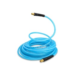 This professional-grade air hose assembly is ideal for pneumatic tools, air compressors, tire inflation, and general compressed air applications. The polyurethane material resists oils, chemicals, and UV exposure while maintaining flexibility in temperatures where rubber and PVC hoses become stiff and unmanageable.
