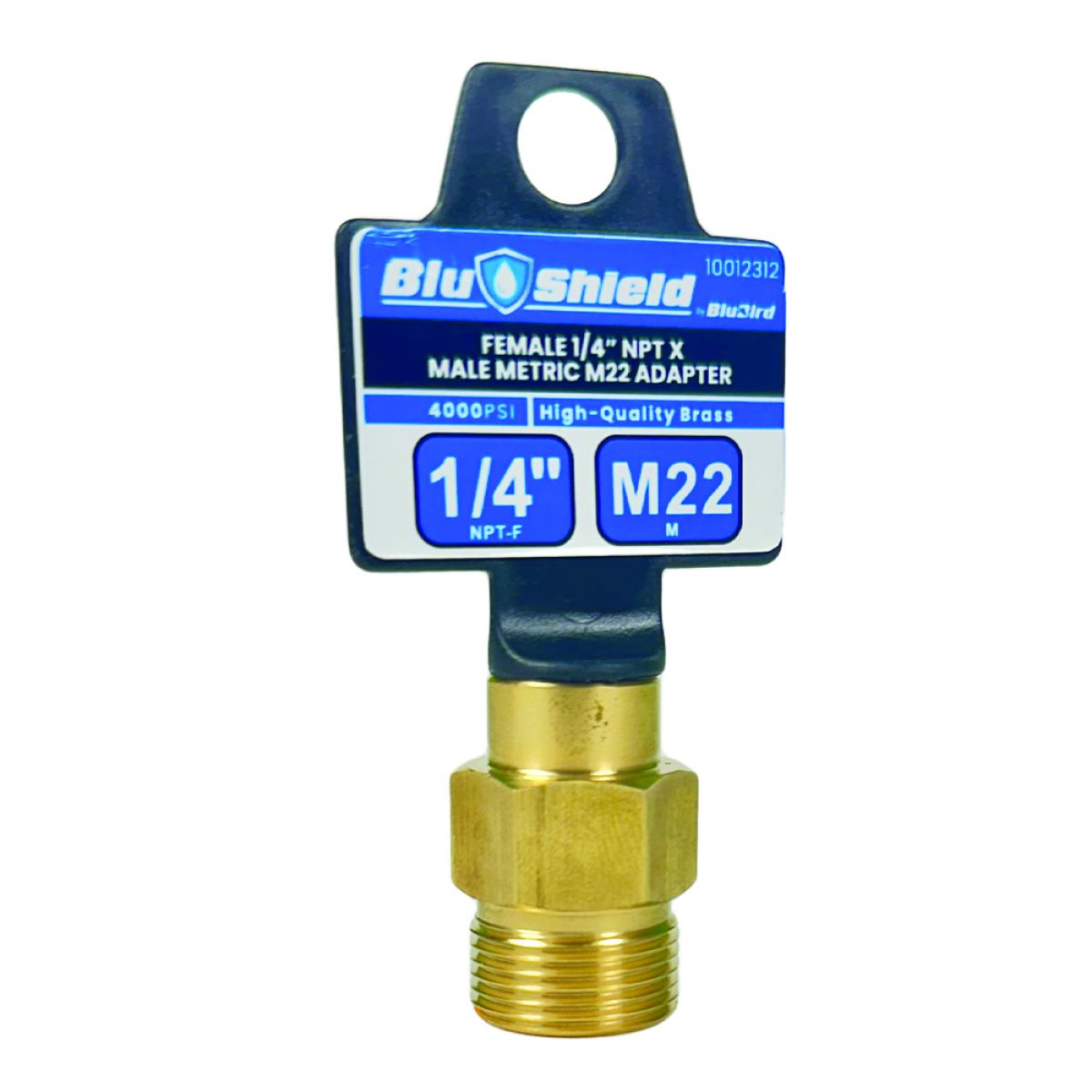 The Blushield PWA009 pressure washer adapter provides efficient thread conversion from male metric to 1/4" female pipe thread, making it an essential fitting for pressure washer systems. This hex nut-designed adapter allows you to connect pumps, chemical injectors, hoses, and various pressure washer components with different thread types.