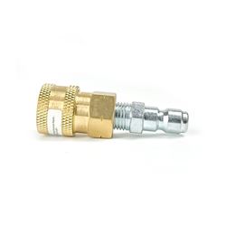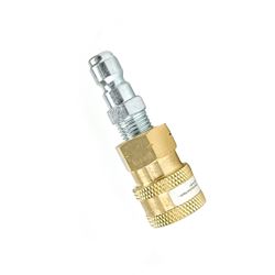 The Blushield PWA010 Quick Disconnect Adapter transforms permanent pipe thread connections into convenient quick-connect systems for pressure washers. This adapter features a 1/4" quick disconnect plug on one end and a 1/4" male NPT (National Pipe Thread) on the other, allowing you to easily convert threaded connections into quick-release couplers.