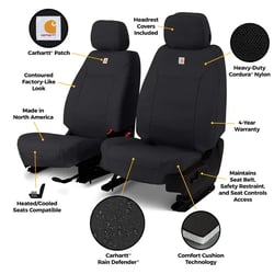 The Covercraft Carhartt Super Dux PrecisionFit Custom Seat Cover combines Covercraft's precision engineering with Carhartt's legendary workwear durability to deliver the ultimate seat protection for hard-working trucks and SUVs. Crafted from durable 1,000 denier CORDURA nylon fabric and foam-backed for extra comfort, this custom seat cover is built to withstand the toughest conditions on the job site and beyond.