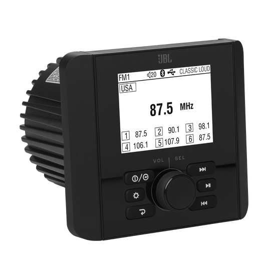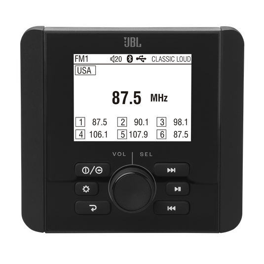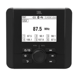 The JBL JAM3000 is an entry-level marine audio source unit designed for multi-element environments and engineered to meet the demands of extreme conditions. This gauge-mount marine receiver features a 2.8-inch monochrome display, built-in Bluetooth connectivity, and a sturdy 4-channel amplifier for wireless music streaming on your boat.