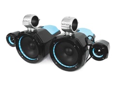 Engineered specifically for the harsh marine environment, these speakers feature extreme saltwater and UV resistance with fully sealed, weather-proof enclosures. The swiveling clamp mounting system makes installation simple and allows for optimal speaker positioning. The R1 550.2 amplifier features calibrated crossover controls, differential RCA inputs for maximum noise rejection, fully conformal-coated PCBs, and nickel-plated marine-grade terminals.