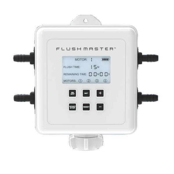 - Sequential automated flushing - flushes each motor individually for 15 minutes (factory default, fully programmable)