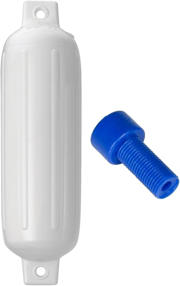 The Polyform G-3 is a premium twin eye boat fender measuring 5.5" in diameter by 19" in length, designed to provide reliable protection for your vessel. This white fender comes complete with an air adapter for easy inflation and maintenance.