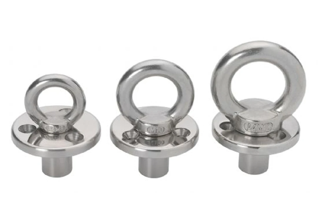 This versatile deck plate supports numerous marine uses including temporary fixing eyes, boat tie-downs, deck-mounted boarding ladders, stand-up blocks, davit mounts, life raft holders, dive tank securing, and many other applications where a strong, removable attachment point is needed.