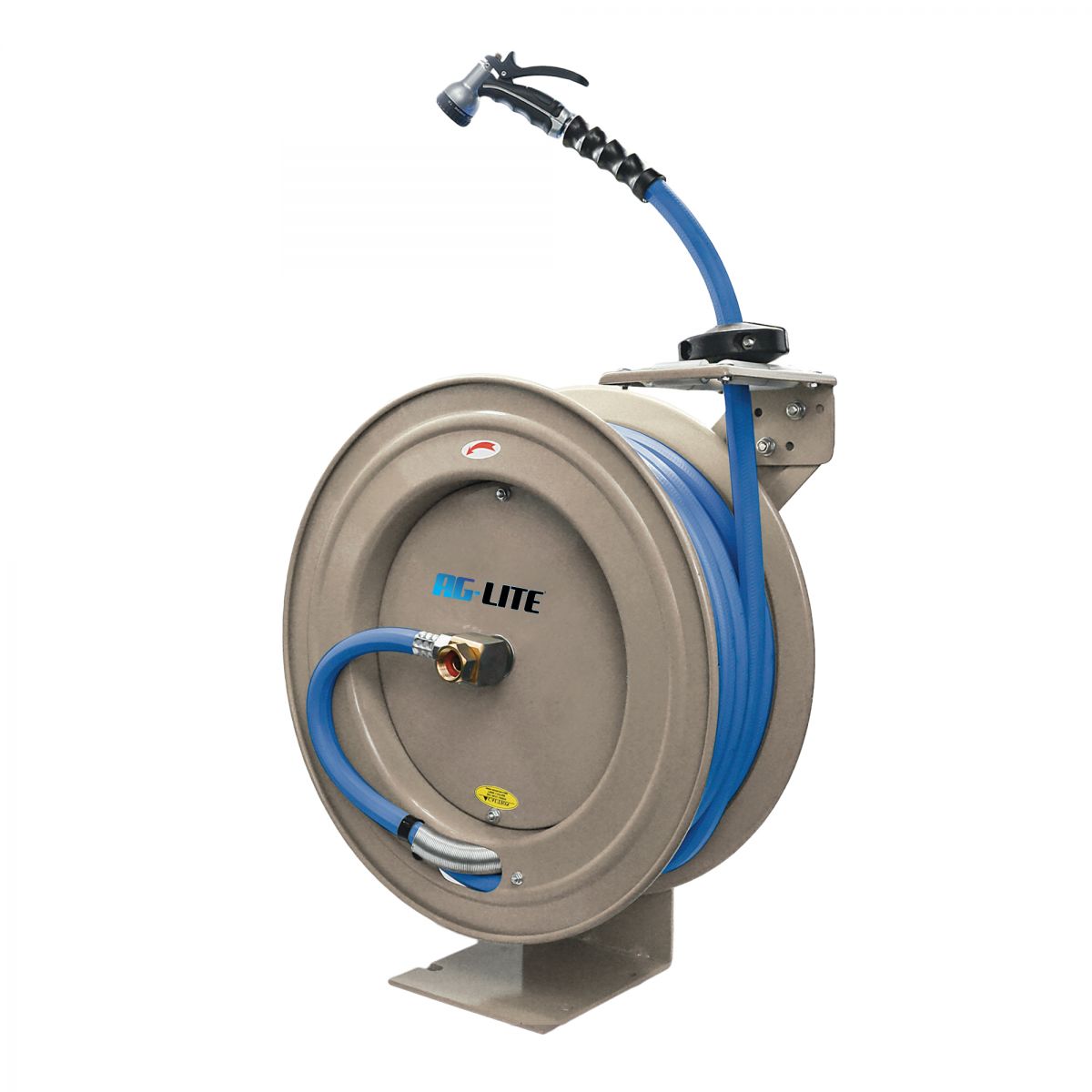 The AG-Lite ALWR5850-CR is a professional-grade retractable hose reel system designed for demanding residential and commercial applications. This complete package features a 50-foot, 5/8-inch diameter 100% rubber hose mounted on a heavy-duty 18-gauge powder-coated steel reel with an advanced 12-point ratchet gearing system for precise hose control and smooth operation.