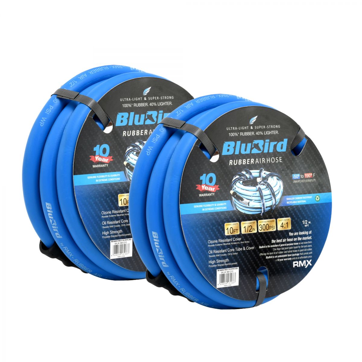 BluBird BB1210-2pk Rubber Air Hose Assembly 1/2" x 10' 300 PSI EPDM 2-Pack