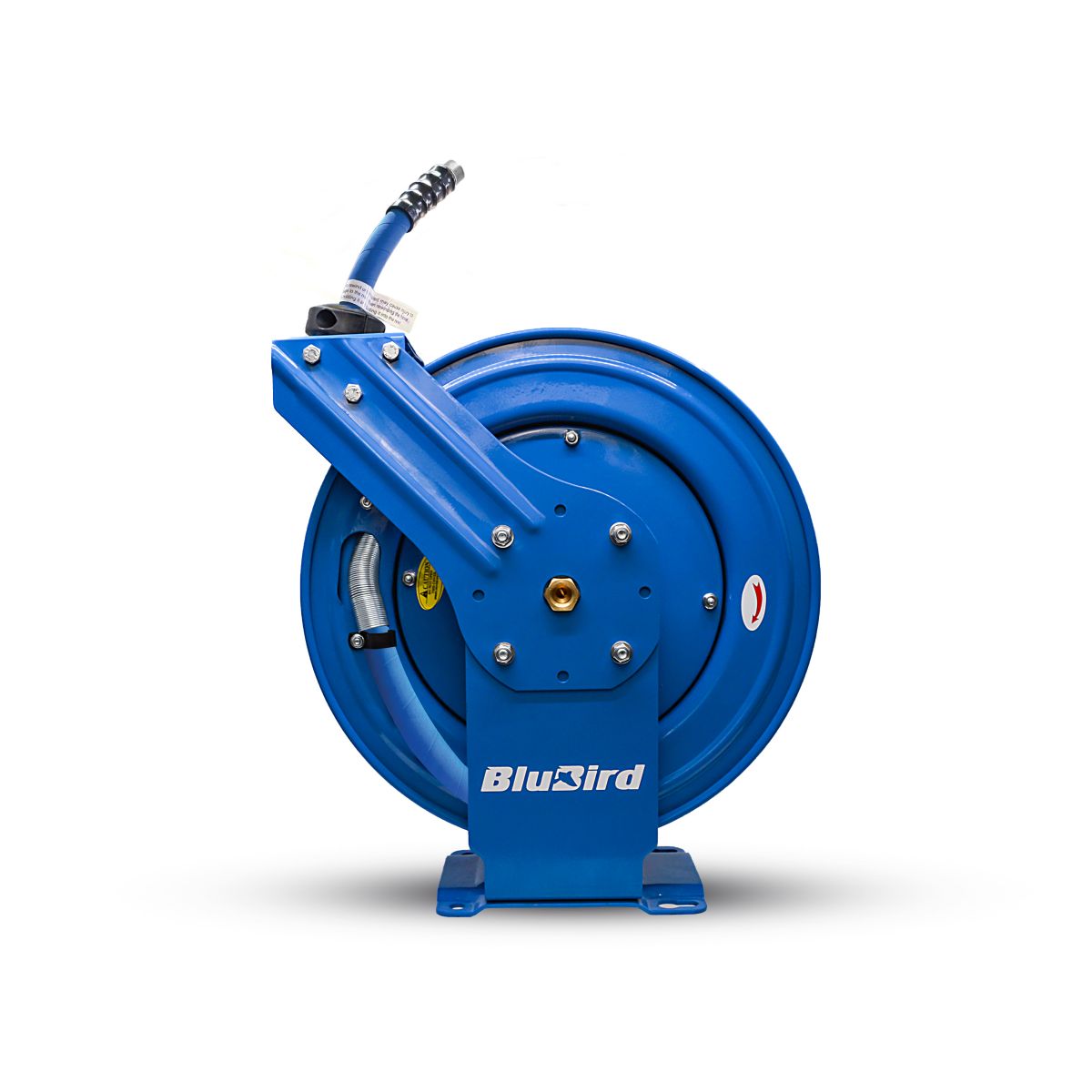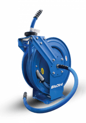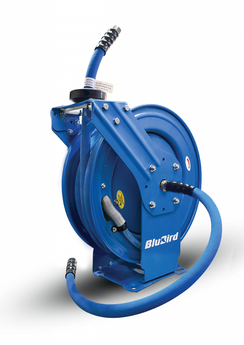 The BluBird BBRDA3450 is a professional-grade dual arm air hose reel designed for demanding commercial and industrial applications. This heavy-duty unit combines corrosion-resistant powder-coated steel construction with a high-quality 3/4" x 50' rubber air hose for reliable compressed air delivery.