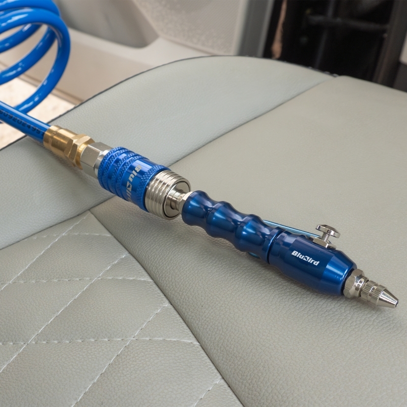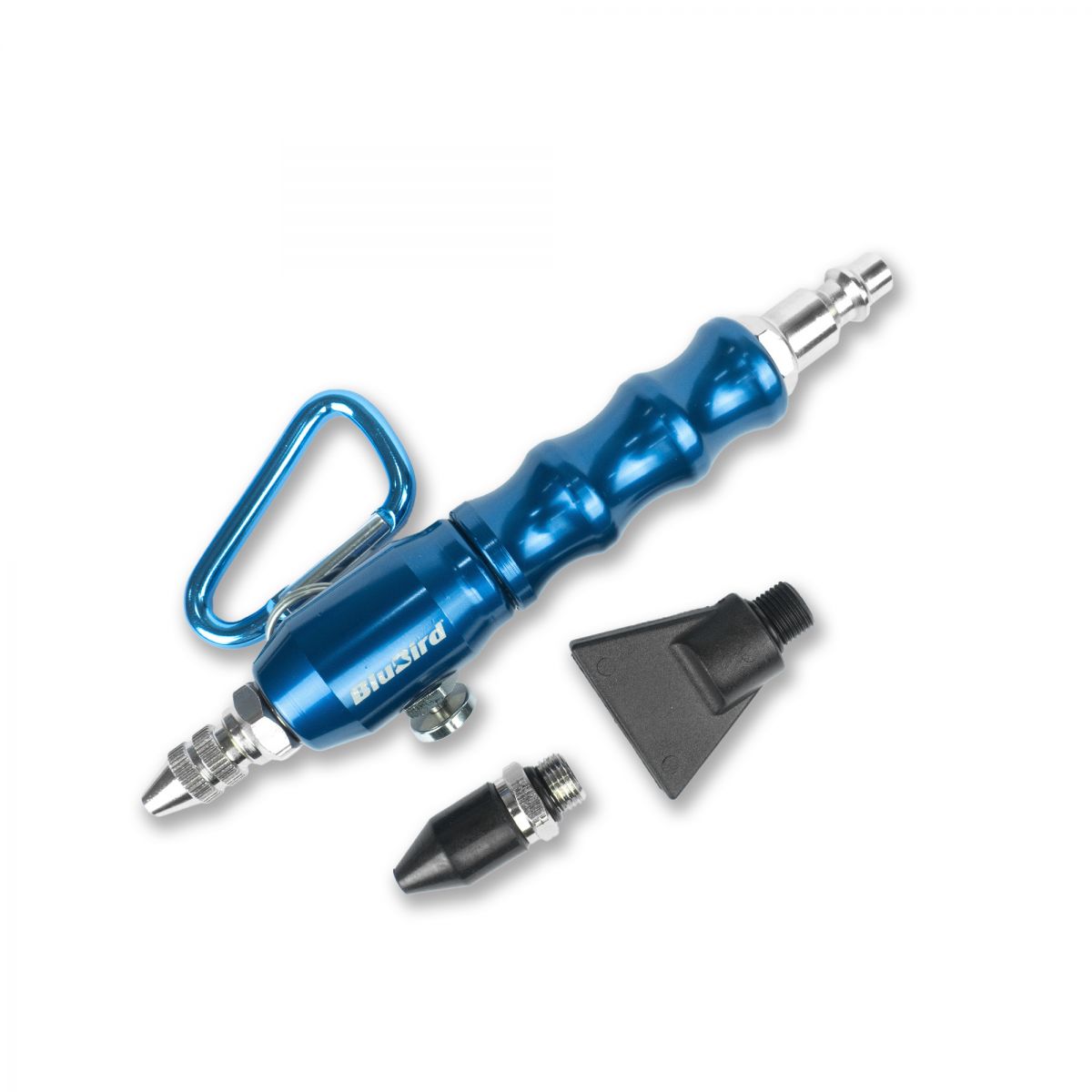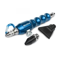 The BluBird CS186-2 Clean Sweep Air Blow Gun Kit is a professional-grade compressed air cleaning system designed for precision dust and debris removal in industrial, automotive, and workshop environments. This complete kit includes the CS186 blow gun body with both the 3A-F adjustable nozzle and SR13 safety nozzle for versatile cleaning applications.